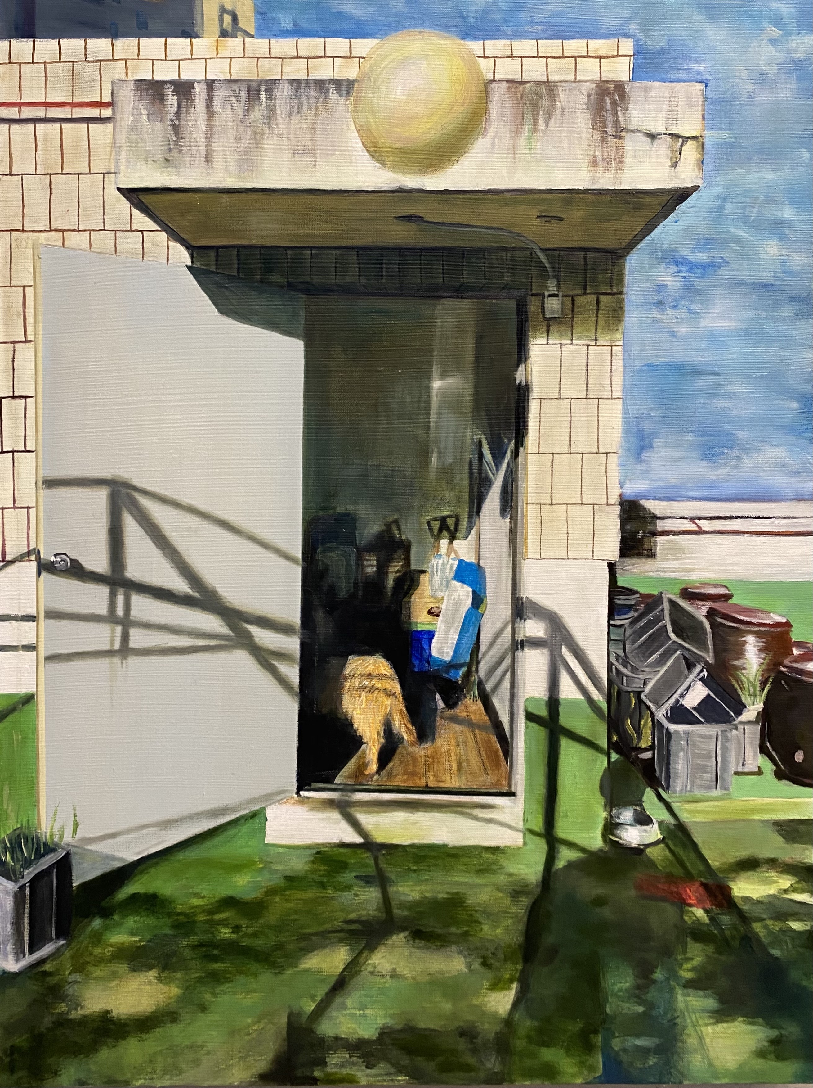 carrying bitter and sweet memories are seated at the rooftop and the dog is